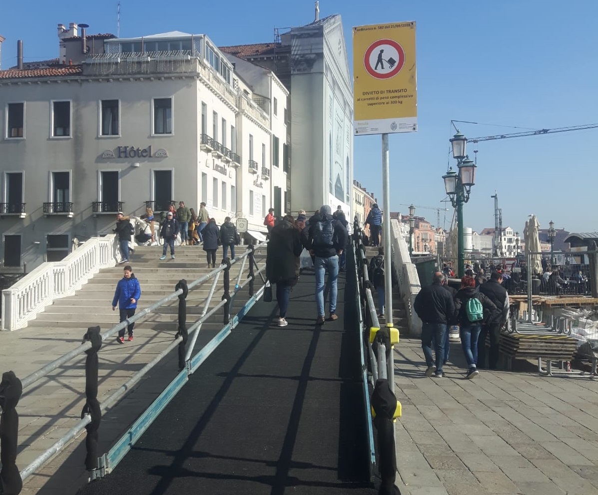 È terminato il montaggio delle rampe su ponte del Vin e ponte de la Pietà. Le rampe resteranno fruibili fino al mese di novembre. Nel mese di aprile toccherà invece ai ponti del Sepolcro e Ca’ di Dio (fino ad ottobre), mentre a maggio saranno montate le rampe sui ponti dell’Arsenale e della Veneta Marina per poi essere smontate nel mese di novembre. Come disposto da un’ordinanza comunale, su tutte le rampe viene posizionata la cartellonistica che ricorda il divieto di utilizzo e attraversamento per carichi complessivi superiori ai 300 kg.