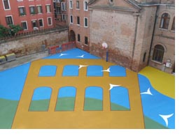 immagine del cortile ripavimentato della scuola elementare San GirolamoQuesta mattina è stata inaugurata la scuola elementare e media San Girolamo, nel sestiere di Cannaregio. I lavori, eseguiti dall’impresa Erre costruzioni srl, sono stati realizzati nei mesi estivi per non intralciare l’attività scolastica.